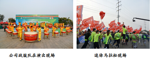 為了更好地宣傳衡水老白干,展示衡水的企業(yè)形象,展示衡水人民的參與熱情,公司積極籌備、組織了200人的方隊(duì)參加迷你馬拉松賽,組織公司戰(zhàn)鼓隊(duì)在現(xiàn)場(chǎng)為馬拉松參賽選手擂鼓助威!同時(shí)在方隊(duì)中安排了令人矚目的古法20年酒甁人型氣模,在休息區(qū)安排了選手拍照墻,70面道旗在起始點(diǎn)賽道旁迎風(fēng)招展,寓意衡水老白干建廠70周年。我們還積極配合衡水衛(wèi)生局,為馬拉松賽醫(yī)療站提供遮陽棚40余頂,保障了醫(yī)療隊(duì)的基本需求。