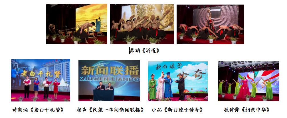 公司舞蹈隊(duì)帶來的舞蹈《酒道》,以逼真的表演將老白干酒文化呈現(xiàn)給觀眾,更把我們老白干精湛的釀酒技藝用肢體語言演繹的惟妙惟肖。詩朗誦《老白干禮贊》,高度贊揚(yáng)了衡水老白干建廠七十周年,一代代老白干人一路走來披荊斬棘,繼承傳統(tǒng)、開拓創(chuàng)新,譜寫成老白干最響亮的贊歌。營銷公司崔艷芳、劉康康帶來的小品《新白娘子傳奇》,搞笑滑稽的動(dòng)作,奪人眼球,令觀眾拍手叫好。包裝一車間袁文興、貢愛華帶來的相聲《包裝一車間新聞聯(lián)播》,以幽默的語言,夸張的表情,使現(xiàn)場氣氛異?;钴S。最后,技術(shù)中心皮寒玉帶來歌伴舞《相聚中華》,聯(lián)歡會(huì)在最強(qiáng)音的旋律中圓滿結(jié)束。